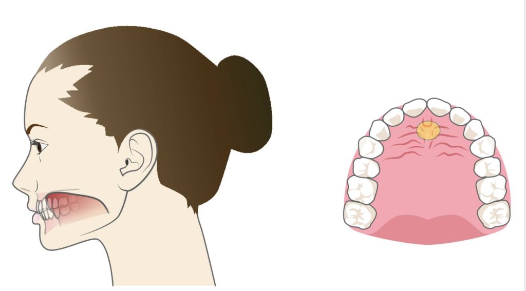 安静時の舌は、先端が上の前歯の裏の歯茎(スポット)に軽く触れているのが理想です。