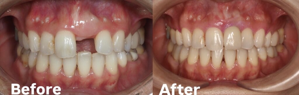 過剰歯を抜歯し、前歯をインプラントで自然に回復